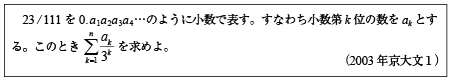 [C]循環小数を含む級数の問題(2003年京大文1)