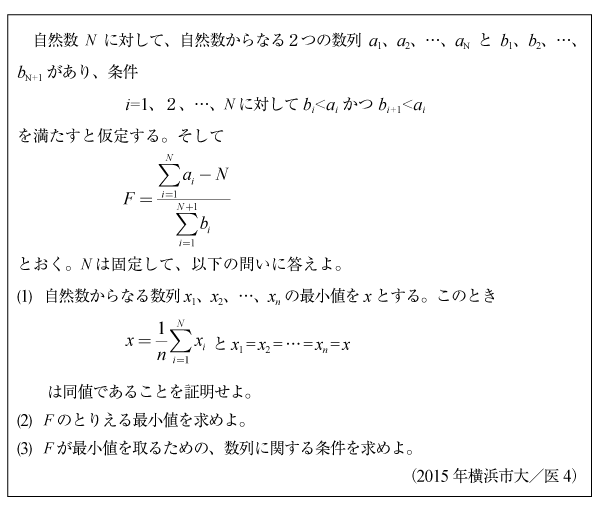 [C]数列の平均に関する難問(2015年横浜市大/医4)