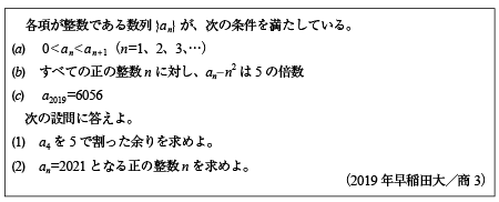 [D]初項が与えられない数列の問題(2019年早大/商3)