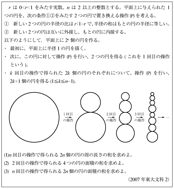 [B]円周の長さや円の面積の数列の問題(2007年東大文科2)