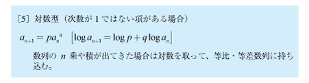 隣接項間の関係が2乗以上とか分数乗の場合は対数型ということです。