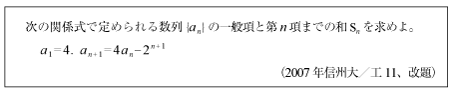 [B]指数型漸化式の問題(2007年信州大/工11)