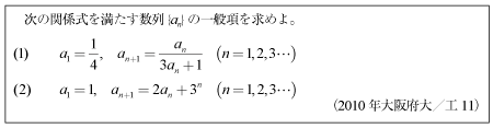 [B]分数漸化式の問題(2010年大阪府大/工11)
