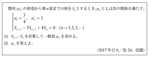 [B]部分和の3項間漸化式の問題(2017年日大/医24)