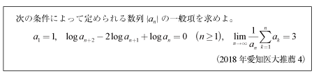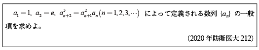 [B]3項間対数漸化式の問題(2020年防衛医大212)
