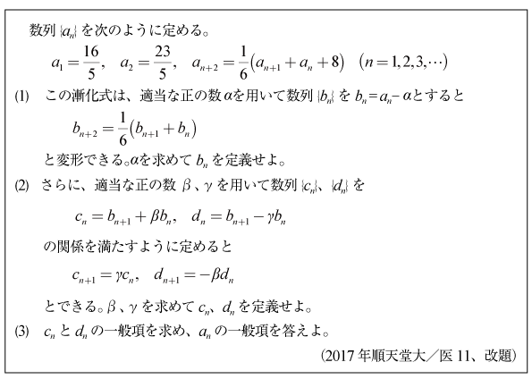 [B]3項間漸化式の問題(2017年順天堂大/医11)