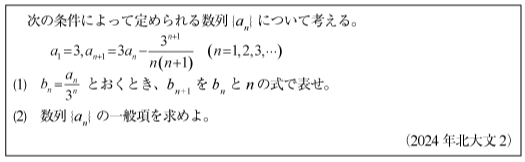 [B]漸化式のやさしい問題(2024年北大文系2)