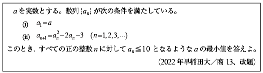 [C]特性根への収束を調べる漸化式の問題(2022年早大/商13)