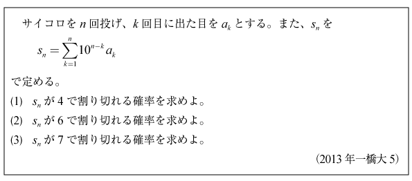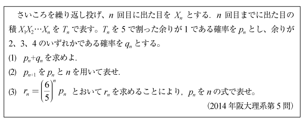 [C]連立漸化式を作って解くサイコロの目の割り算の問題(2014年阪大理系5)