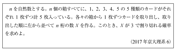 [C]単独確率漸化式を作って解く割り算の問題(1994年京大文系4)