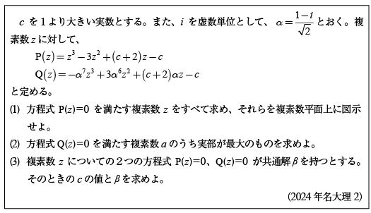 [C]2つの複素数方程式の共通解の問題(2024年名大理2)