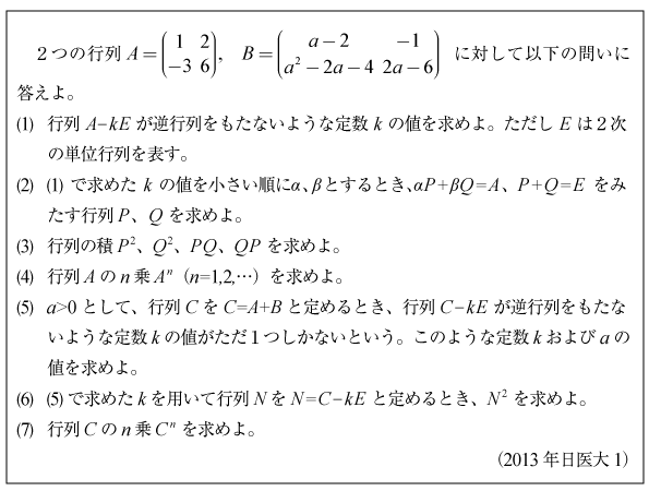 [B]スペクトル分解による行列のn乗の問題(2013年日本医科大1)