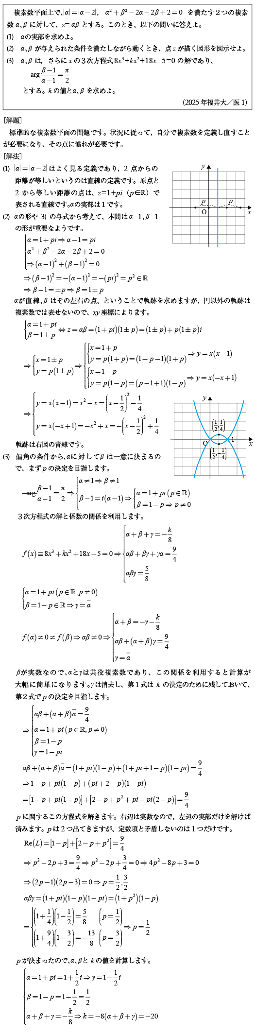 [C]複素数平面上の3次方程式の解の問題(2025年福井大/医1)