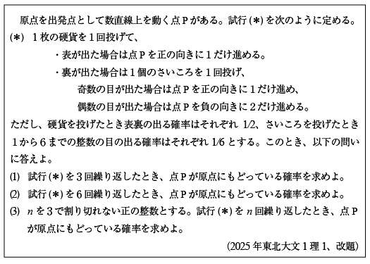 [A]二項確率のやさしい問題(2025年東北大文1理1)