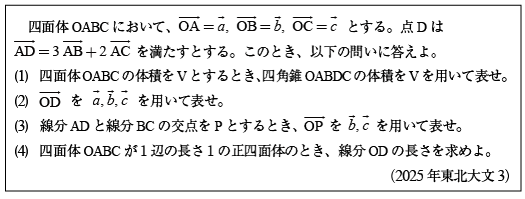 [B]四面体を拡張する面積や体積の問題(2025年東北大文3)