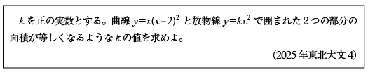 [C]3次関数と2次関数が挟む領域の面積等分の問題(2025年東北大文4)