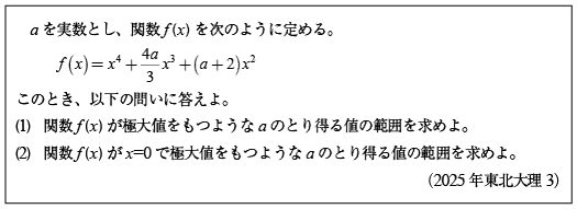 [B]4次関数の極大値がある条件の問題(2025年東北大理3)