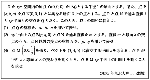 [C]ベクトルによる球面・平面間の写像の問題(2025年東北大理5)
