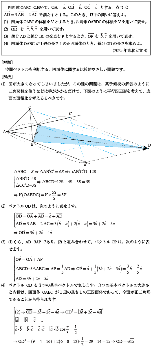 [B]四面体を拡張する面積や体積の問題(2025年東北大文3)
