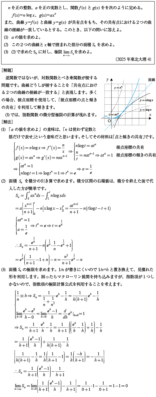[C]相接する対数関数とべき乗関数が囲む領域の面積の問題