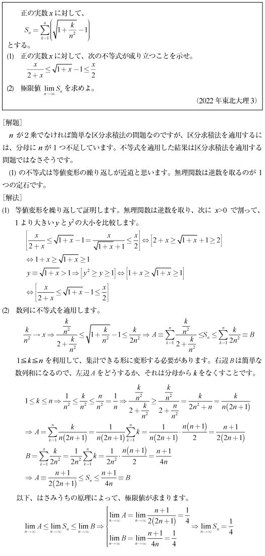 [C]数列の部分和の極限の問題(2022年東北大理3)