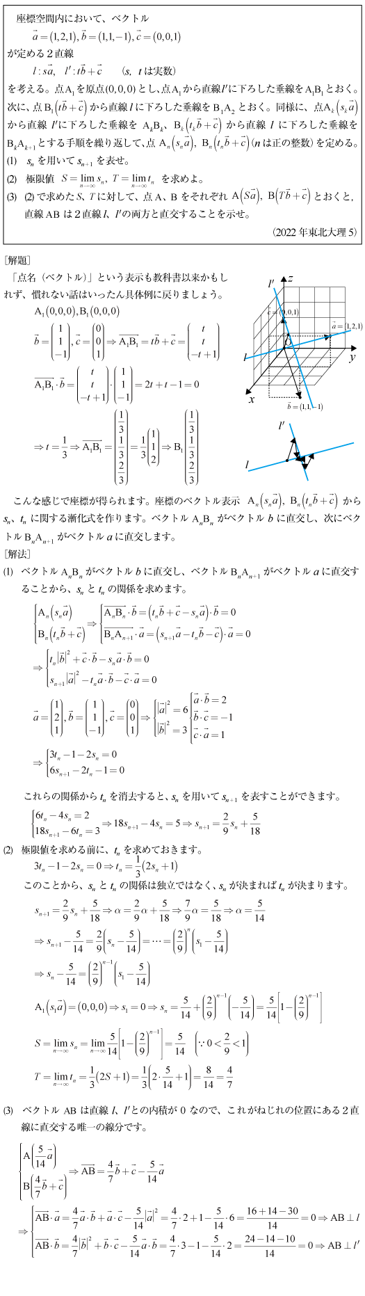 [B]ねじれた2直線に直交するベクトルの数列の問題