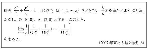 [B]楕円の動径の2乗和を区分求積法で求める問題