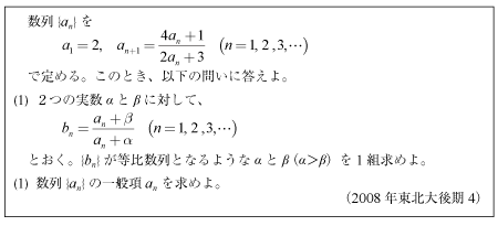 [C]分数漸化式の問題(2008年東北大後期4)