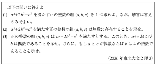 [B]合同式で解く基礎的な整数問題(2026年東北大文2理2)