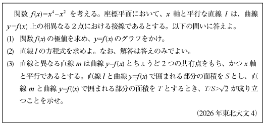 [B]4次関数と水平接線が囲む領域の面積の問題