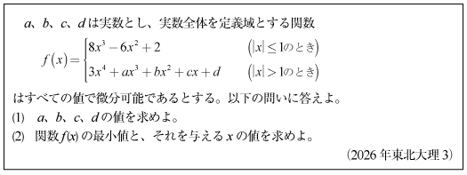 [B]4次関数の係数決定と最小値の問題(2026年東北大理3)