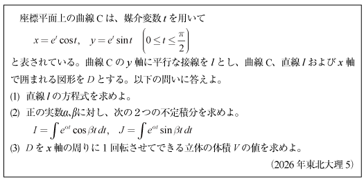 [D]媒介変数曲線の総合問題(2026年東北大理5)