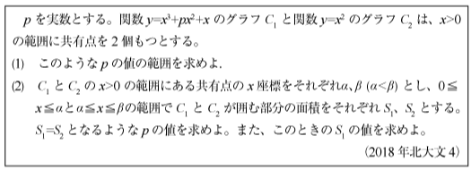 [B]3次関数と2次関数の交点数と面積の問題(2018年北大文4)