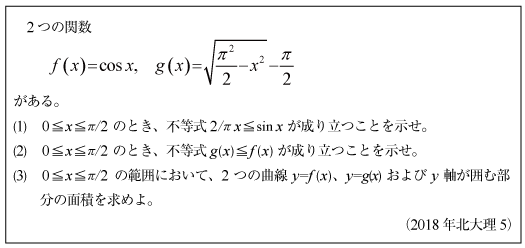[C]関数不等式の証明と積分計算の問題(2018年北大理5)