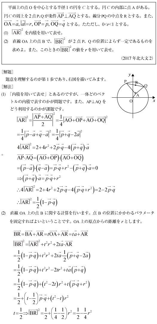 [B]単位円内の直角三角形のベクトル問題(2017年北大文2)
