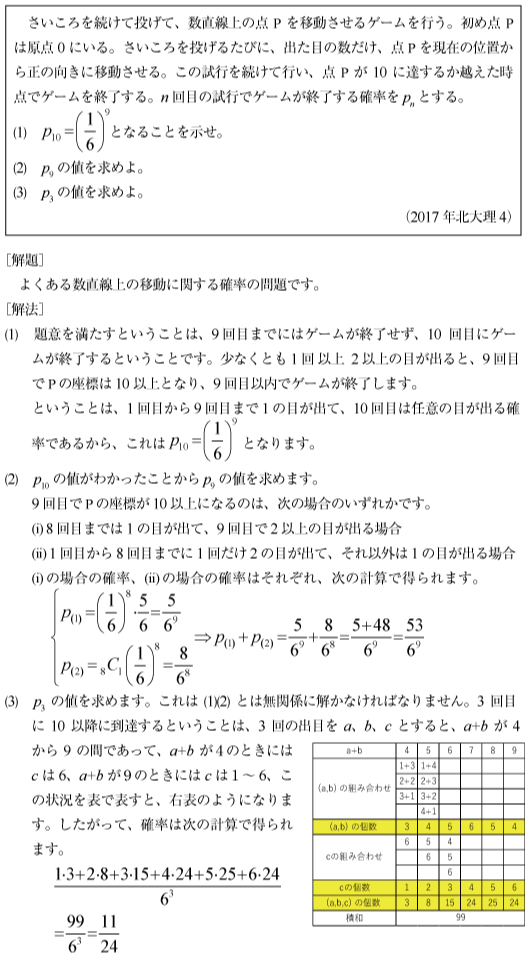 [B]数直線上を移動する確率の問題(2017年北大理4)