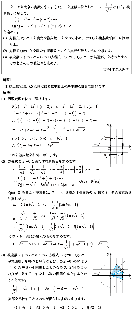 [C]2つの複素数方程式の共通解の問題(2024年名大理2)