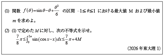 [D]三角関数近似式の精度評価と不等式証明の問題(2026年東大理1)