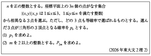 [C]格子点から三角形を作る確率の問題(2026年東大文2理2)