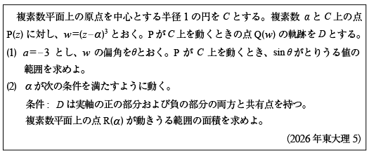 [E]円上複素数の3乗の存在領域の問題(2025年 東大理5)