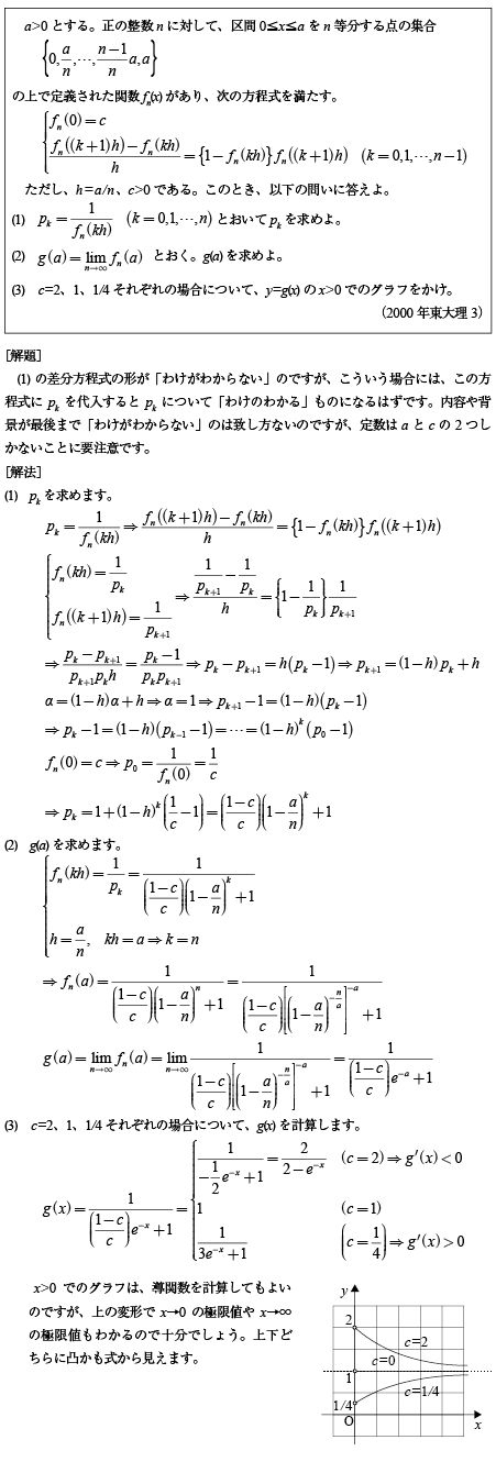 [B]差分方程式から指数関数を導く問題(2000年東大理科3)