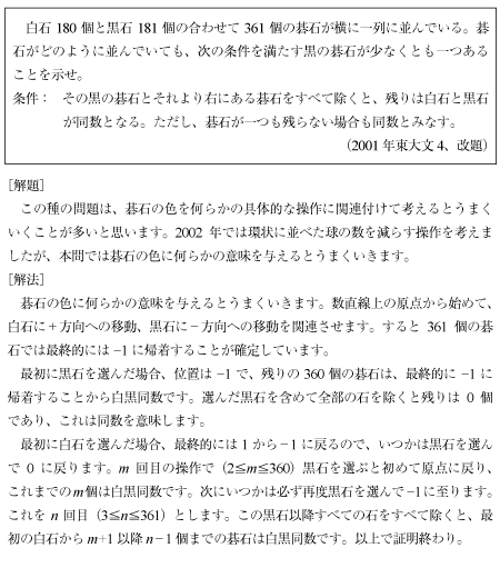 [C]361個の碁石に関する証明問題(2001年東大文科4)