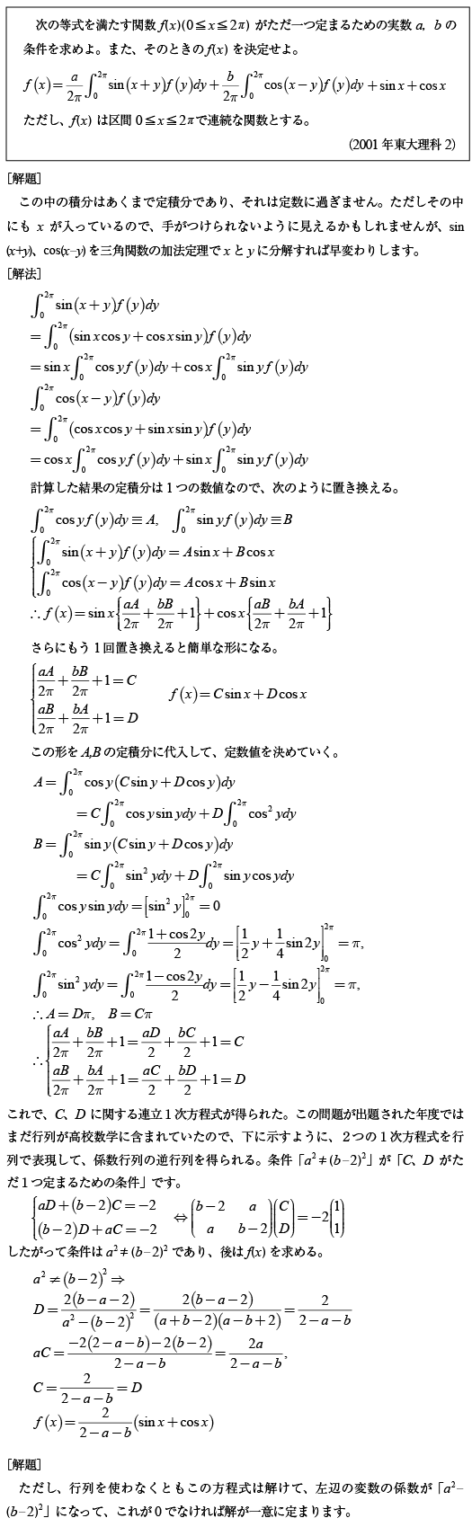 [B]三角関数を含む関数方程式の問題(2001年東大理科2)