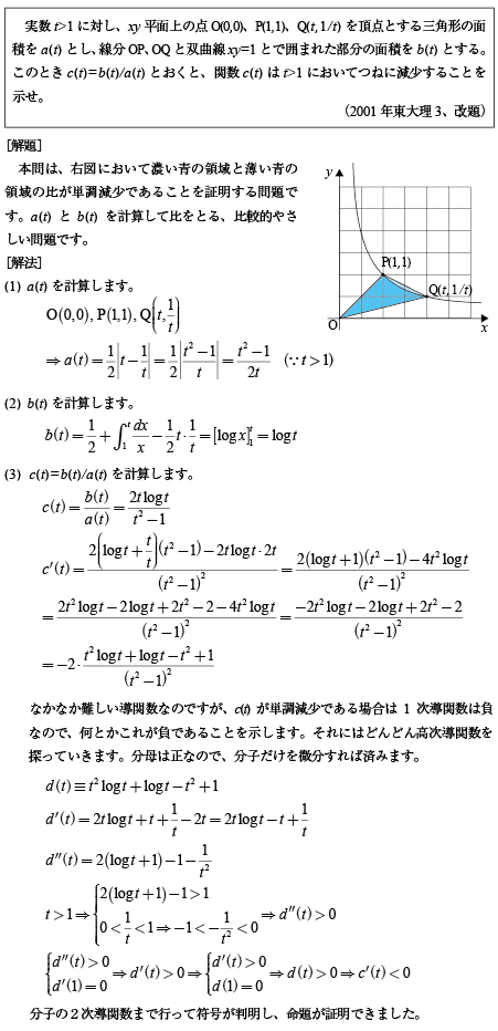 [B]分数関数の分子の2次導関数の符号を調べる図形問題(2001年東大理科3)