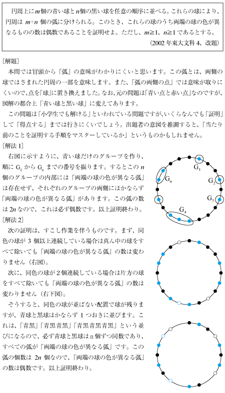 [B]青と黒の玉の配置の証明問題(2002年東大文科4)