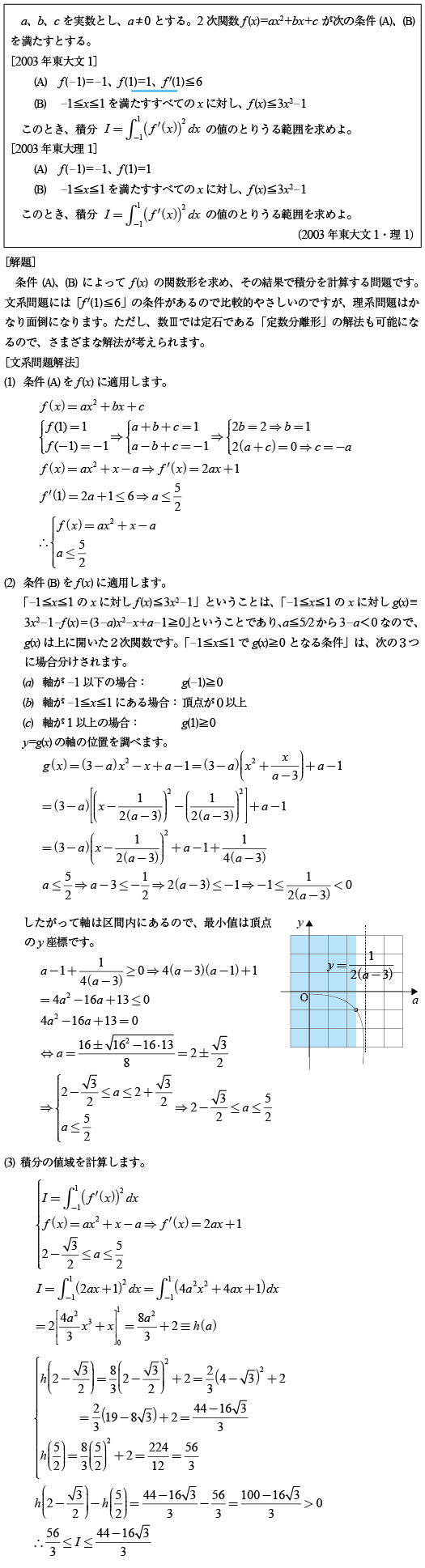 [B]2次関数に関する関数方程式と積分の値域の問題(2003年東大文1理1)