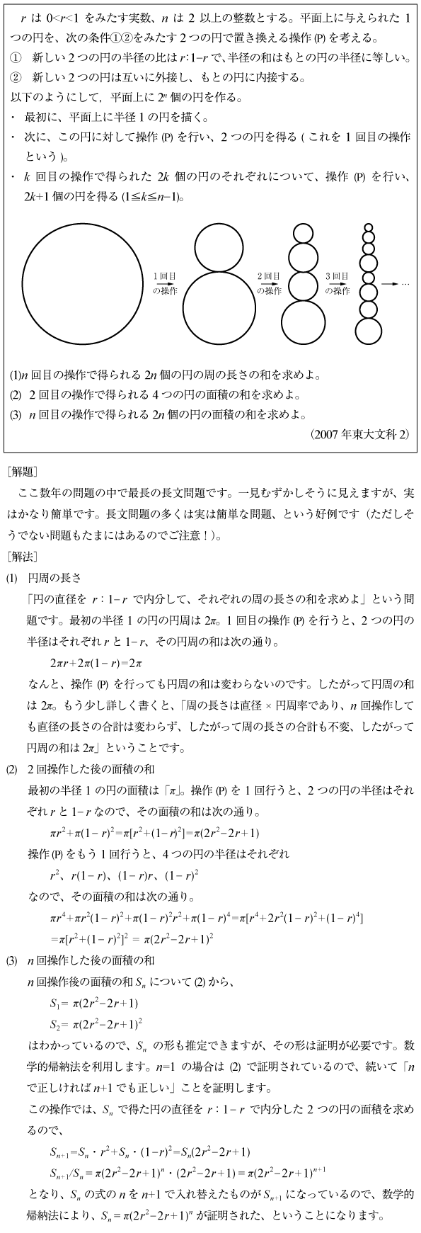 [B]円周の長さや円の面積の数列の問題(2007年東大文科2)