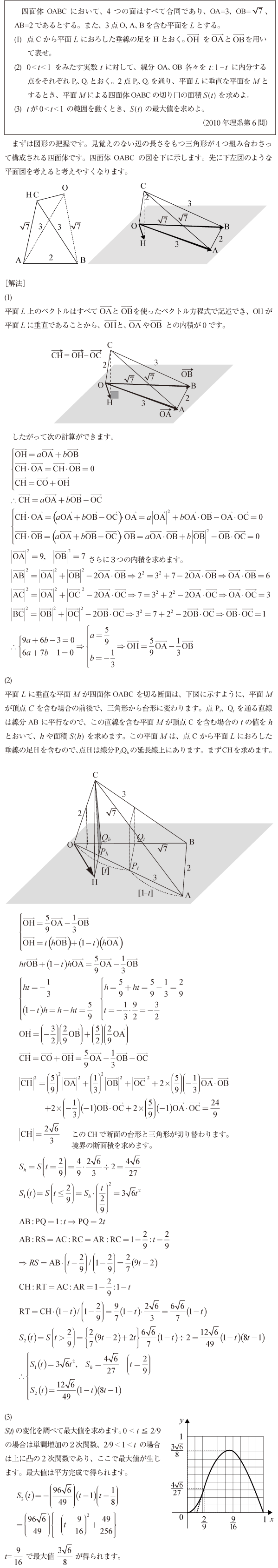 [D]空間ベクトルとベクトル方程式の問題(2010年東大理科6)