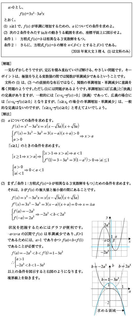[B]3次関数の振る舞いに関する問題(2018年東大文3理4)