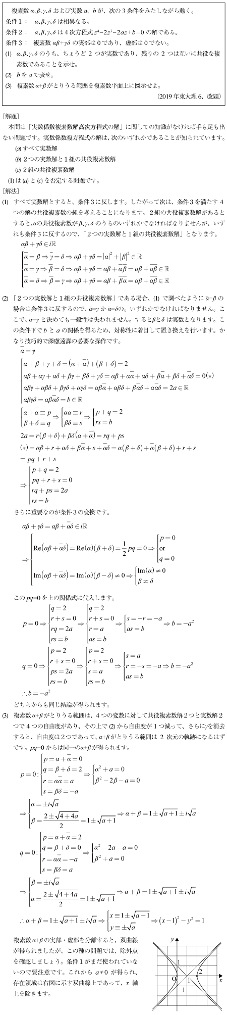 [D]4次の実数係数方程式の解の問題(2019年東大理科6)
